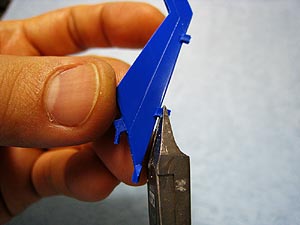 レジンキットに限らず、あらゆる立体工作の必須アイテム、紙ヤスリ。写真のタイプの他、文具店等でも見かける、茶色いタイプ、模型店でお馴染みの白っぽいもの等様々で、ホームセンター、ハンズ等では全てのタイプを目にすることが出来るだろう。全てに共通するのは、紙や布等に、砂状の研磨剤を定着させてある(故に英名はsand paper)点である。