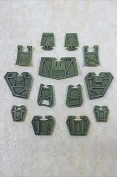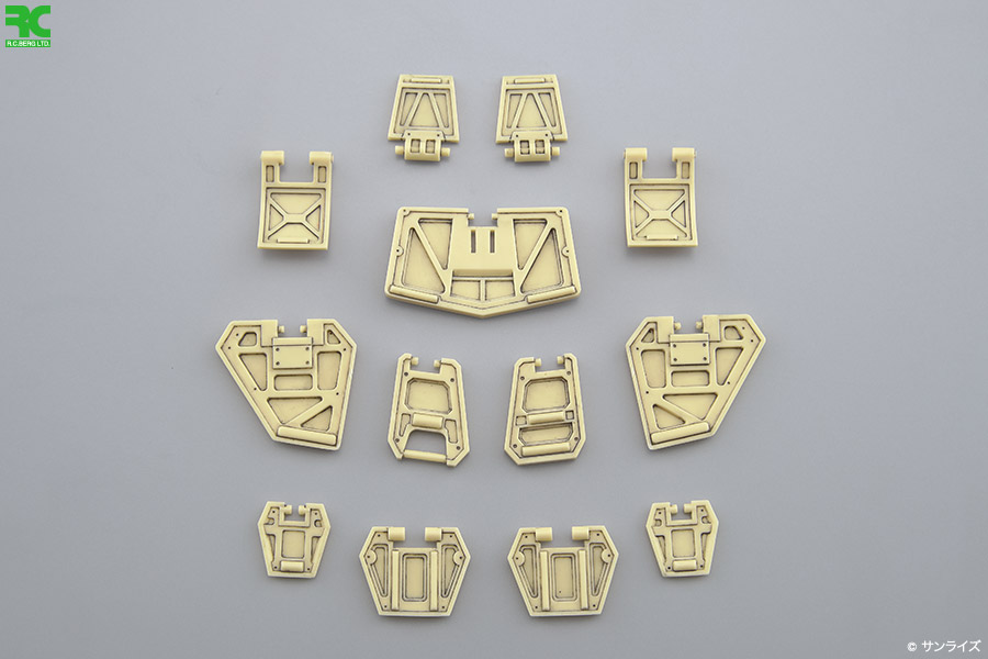 表面は、その裏面構造と整合性を取るためにリベット位置を一部変更。しかし、キット全体の雰囲気を損なわないよう細心の配慮を施しており、既存のスコープドッグ・バリエーション機にも幅広くご使用いただけます。